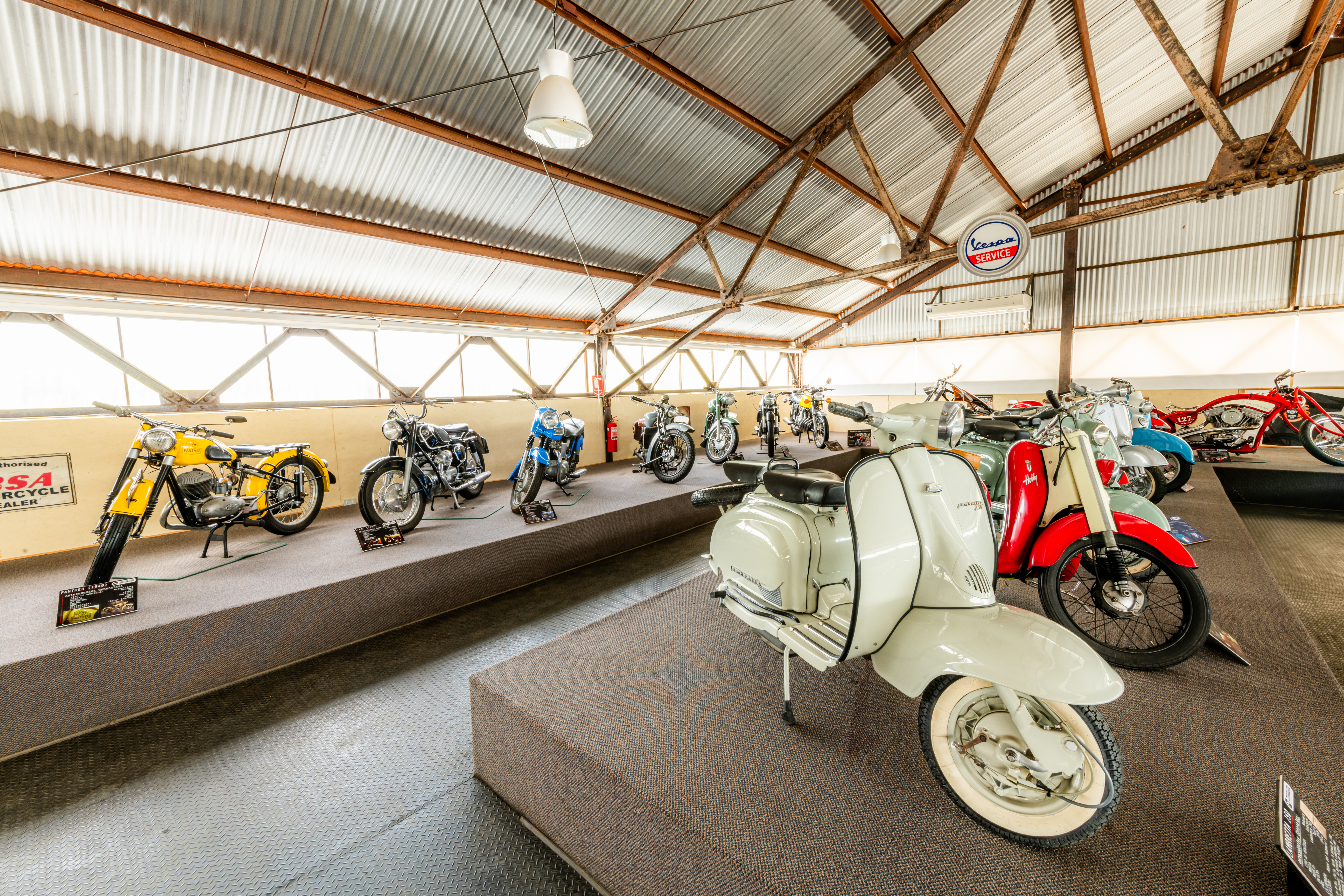 Más de 100 ejemplares de automóviles, motocicletas y medios de transporte exhibidos en 2.000 mts 2 de instalaciones especialmente acondicionadas.